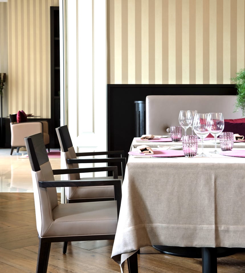 At Via Sacchi 8, in an elegant dining room in the Turin Palace, just a few steps from a new parking area